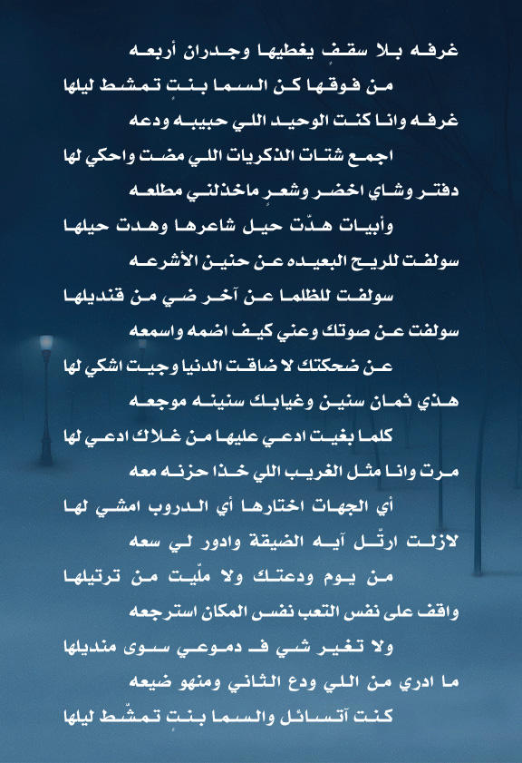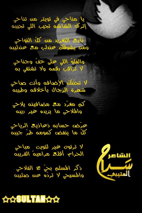 ثنتين يعطونّك معزه و تقدير دينك و فعل البر في والدينك،، و ثنتين منهن يكثرون المخاسير درب الضياع و صحبةٍ ما تعينك،، و ثنتين عنهن ما تجوز المعاذير سترك لاهل بيتك و مكسب يمينك,, و ثنتين لو طال الزمن ما بهن خير هرج القفا و مجاملة من يهينك،، و ثنتين يطلقن الوجيه المسافير ترديد ترحيبك و ضحكة جبينك،، و ثنتين يسوون التعب و المشاوير مواصل ارحامك و فزعة قرينك،، و ثنتين نار و عار معنى و تفسير ترضى الخنا و تخون مستأمنينك،، و ثنتين لا تقبل بهن الاشاوير الجار و الصاحب ليا قال وينك.؟ و ثنتين يشرن بالذهب و الدنانير حشمة بني عمك و نصرة عوينك،، و ثنتين جنبهن و احذرك تحذير فعلٍ يشنّع بك و هرجٍ يدينك